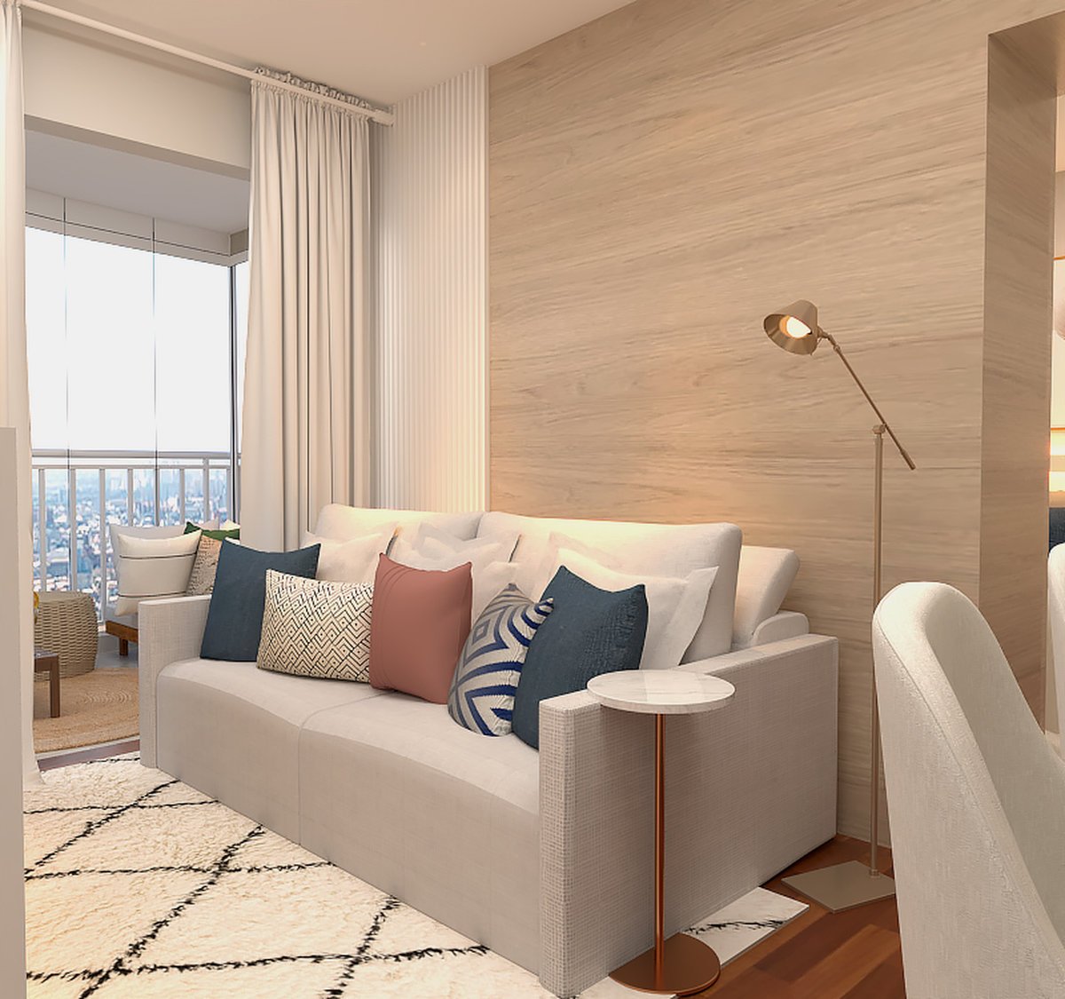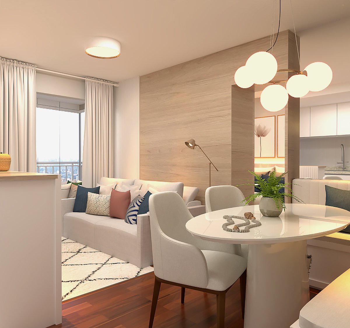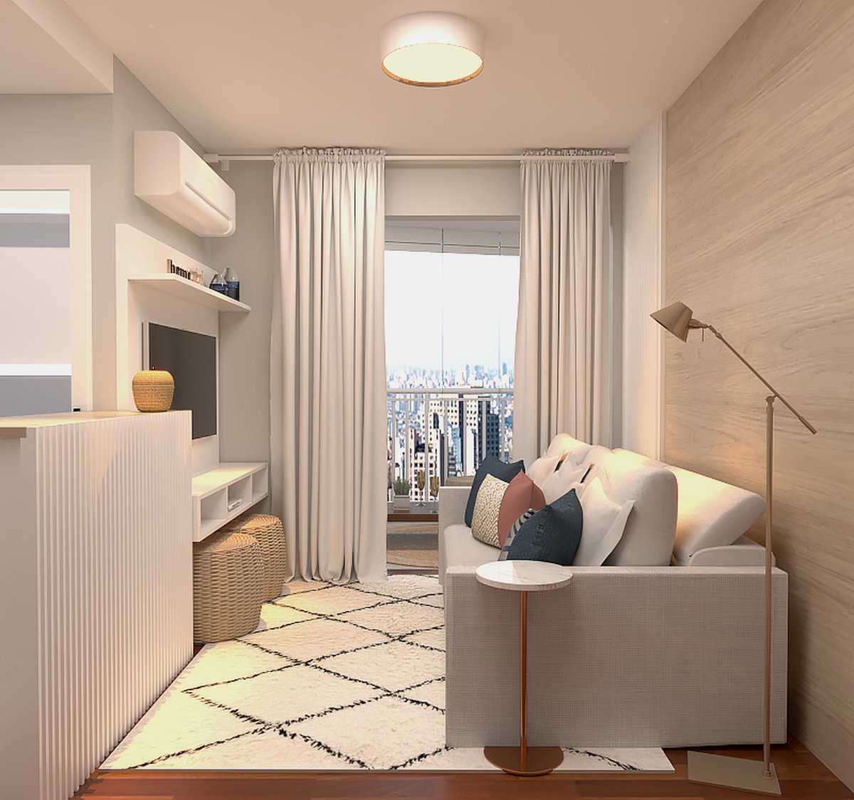 O projeto de interiores e consultoria de decoração foi criado para um apartamento compacto no Brooklin, SP, trazendo personalidade feminina e acolhedora.