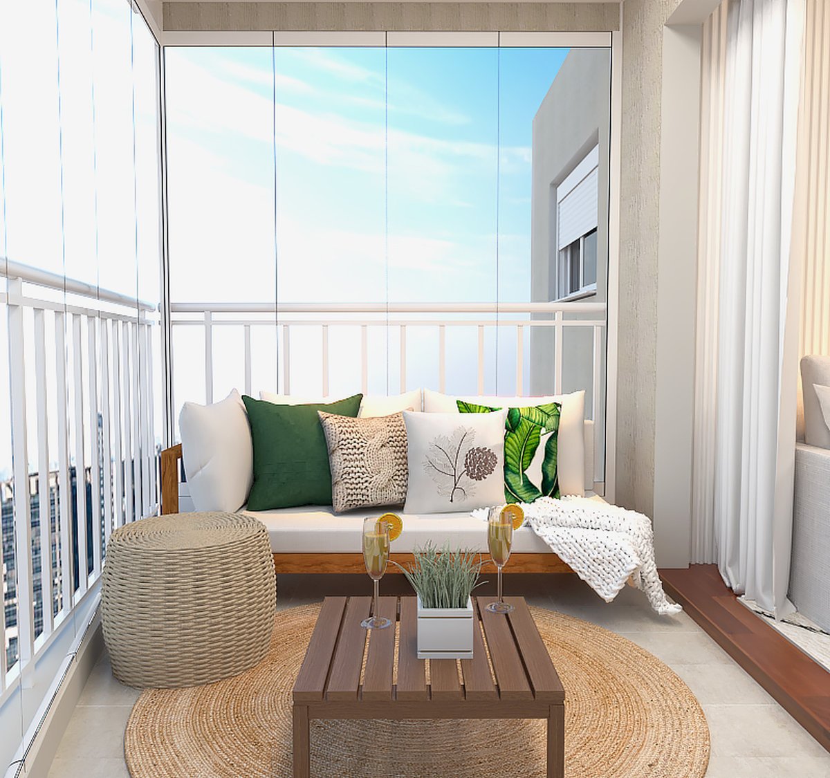Detalhes como objetos decorativos, iluminação estratégica e tecidos texturizados reforçam o estilo pessoal da moradora.