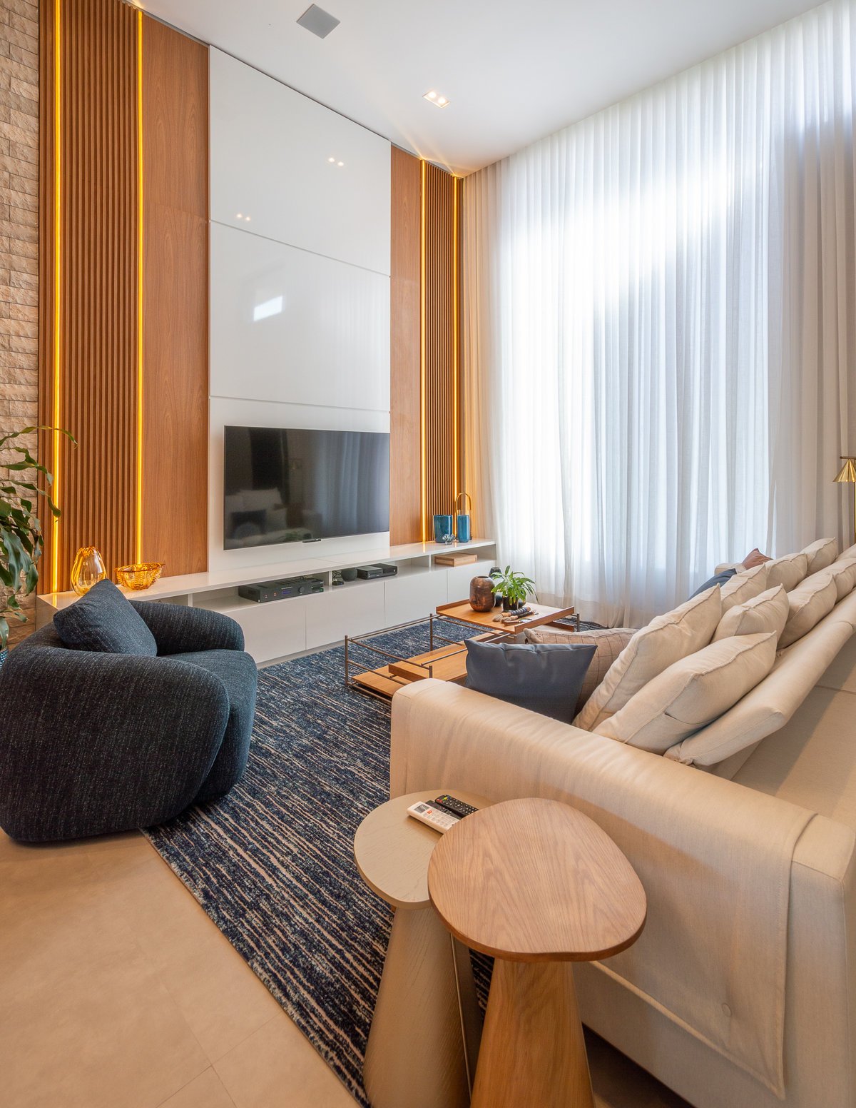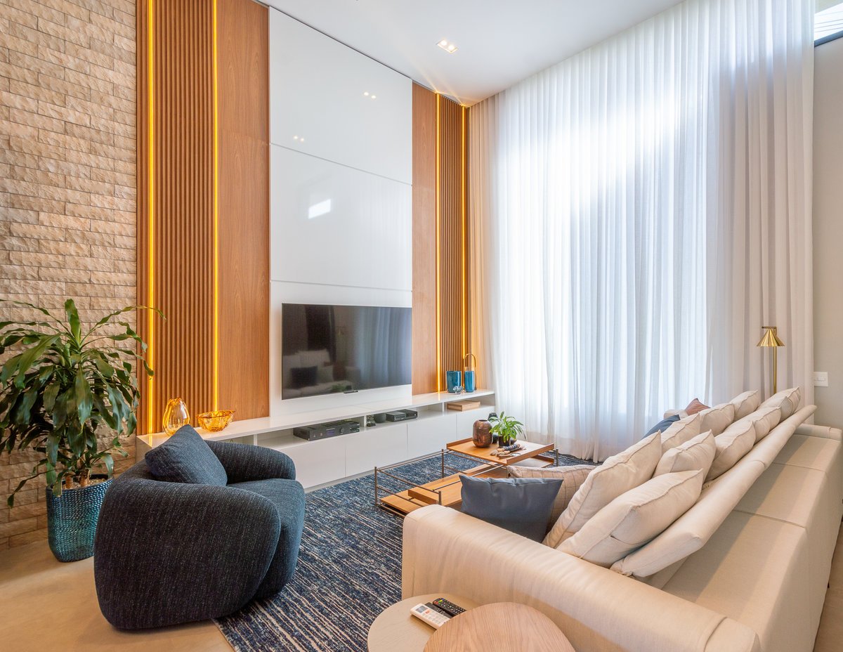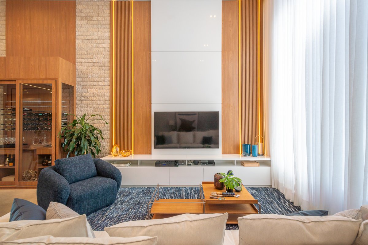 Projeto de interiores pensado com carinho para um casal que valoriza o estilo contemporâneo com uma essência minimalista e conexão com a natureza. Cada detalhe foi escolhido a dedo para criar ambientes atemporais, acolhedores e sofisticados, com paleta suave, texturas naturais. A grande protagonista é a piscina natural, que remete à praia e traz a sensação de estar em meio à natureza, mesmo em meio urbano. Madeira, pedra e tons terrosos e um toque de azul marinho estão presentes em harmonia, reforçando o conceito de bem-estar. O resultado é um refúgio elegante, sereno e cheio de personalidade.