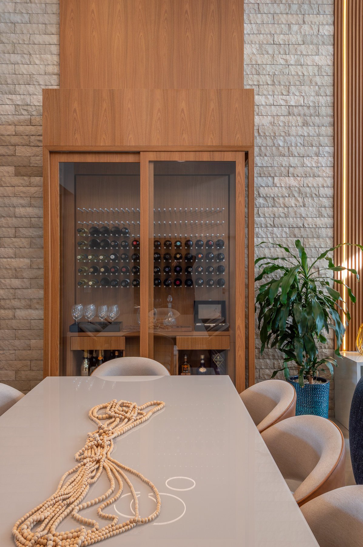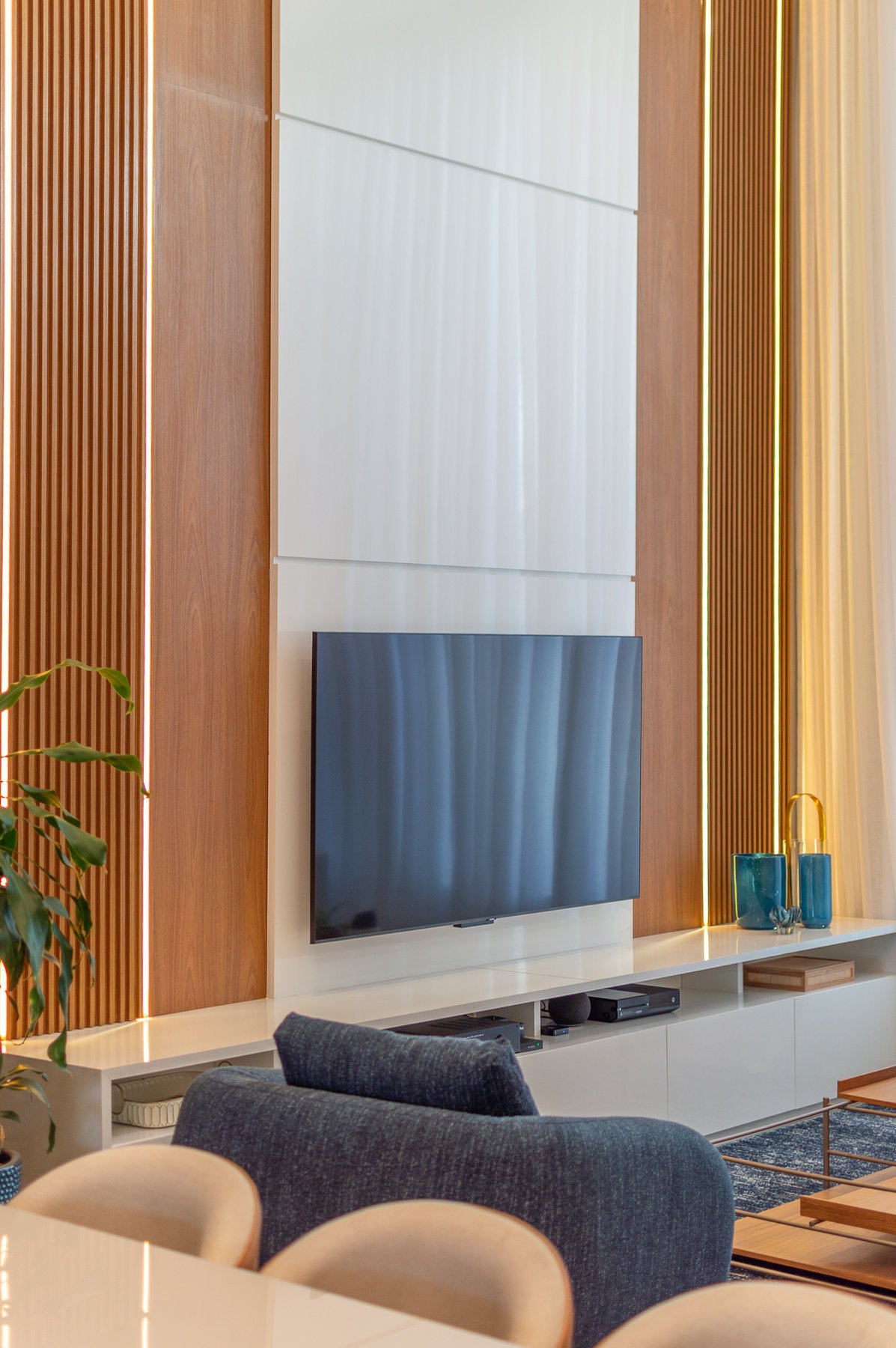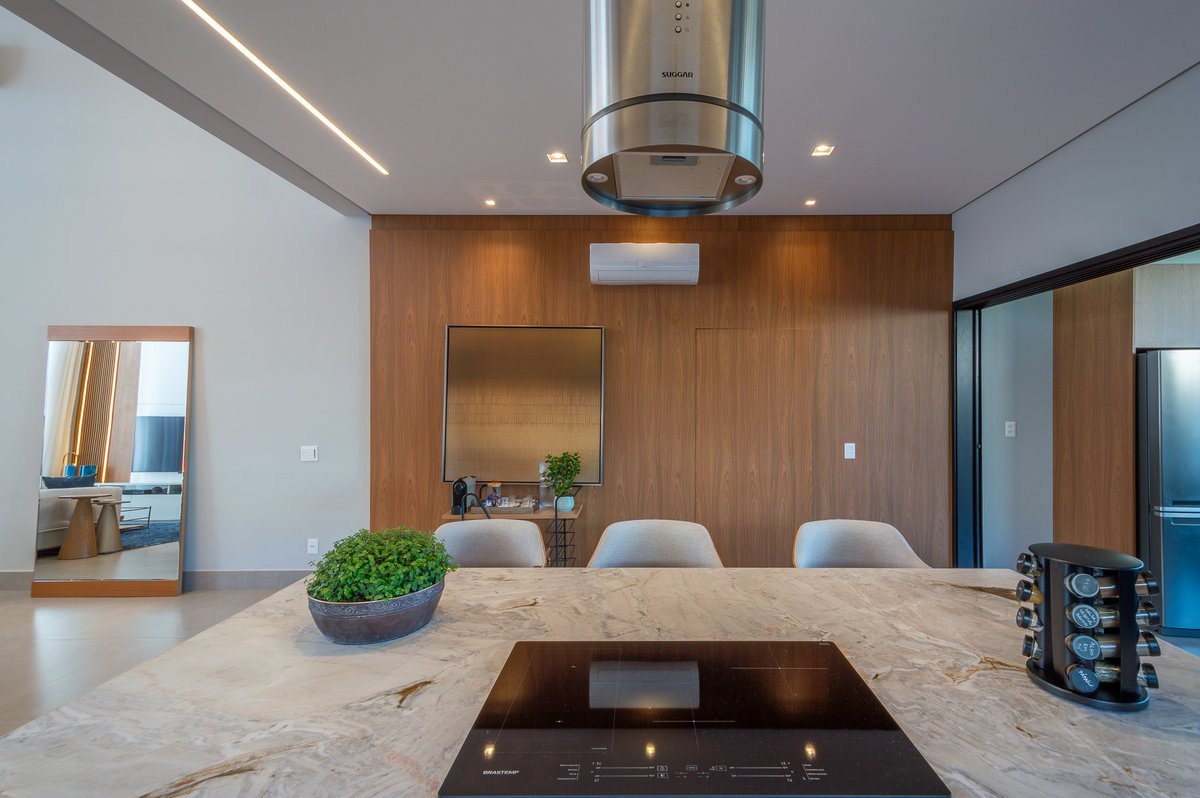 Projeto de interiores pensado com carinho para um casal que valoriza o estilo contemporâneo com uma essência minimalista e conexão com a natureza. Cada detalhe foi escolhido a dedo para criar ambientes atemporais, acolhedores e sofisticados, com paleta suave, texturas naturais. A grande protagonista é a piscina natural, que remete à praia e traz a sensação de estar em meio à natureza, mesmo em meio urbano. Madeira, pedra e tons terrosos e um toque de azul marinho estão presentes em harmonia, reforçando o conceito de bem-estar. O resultado é um refúgio elegante, sereno e cheio de personalidade.