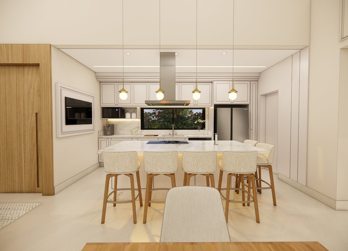 Este projeto de interiores reflete um conceito clássico contemporâneo, acolhedor e sofisticado, onde a luz natural e a integração dos ambientes são protagonistas. Os clientes buscaram um espaço que unisse funcionalidade e elegância, valorizando o convívio familiar e a sensação de amplitude. Tons neutros, texturas suaves e elementos naturais criam harmonia e conforto visual. A marcenaria em madeira aquece o ambiente e traz identidade ao projeto. Cada detalhe foi pensado para transmitir leveza, bem-estar e autenticidade no dia a dia.