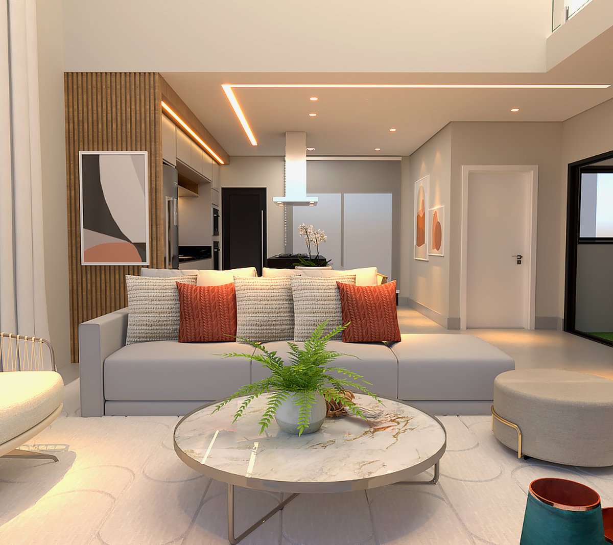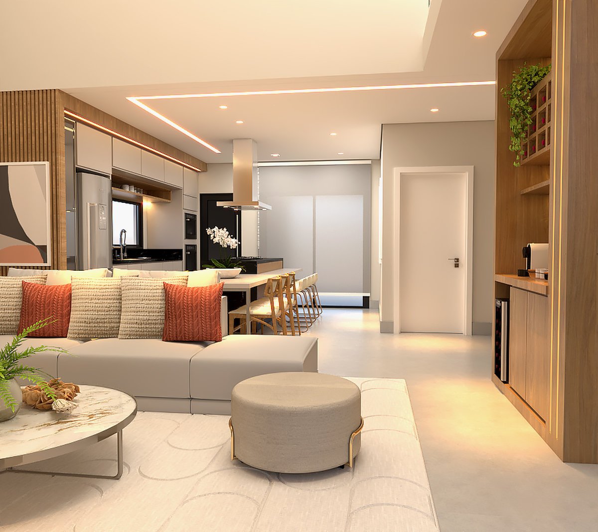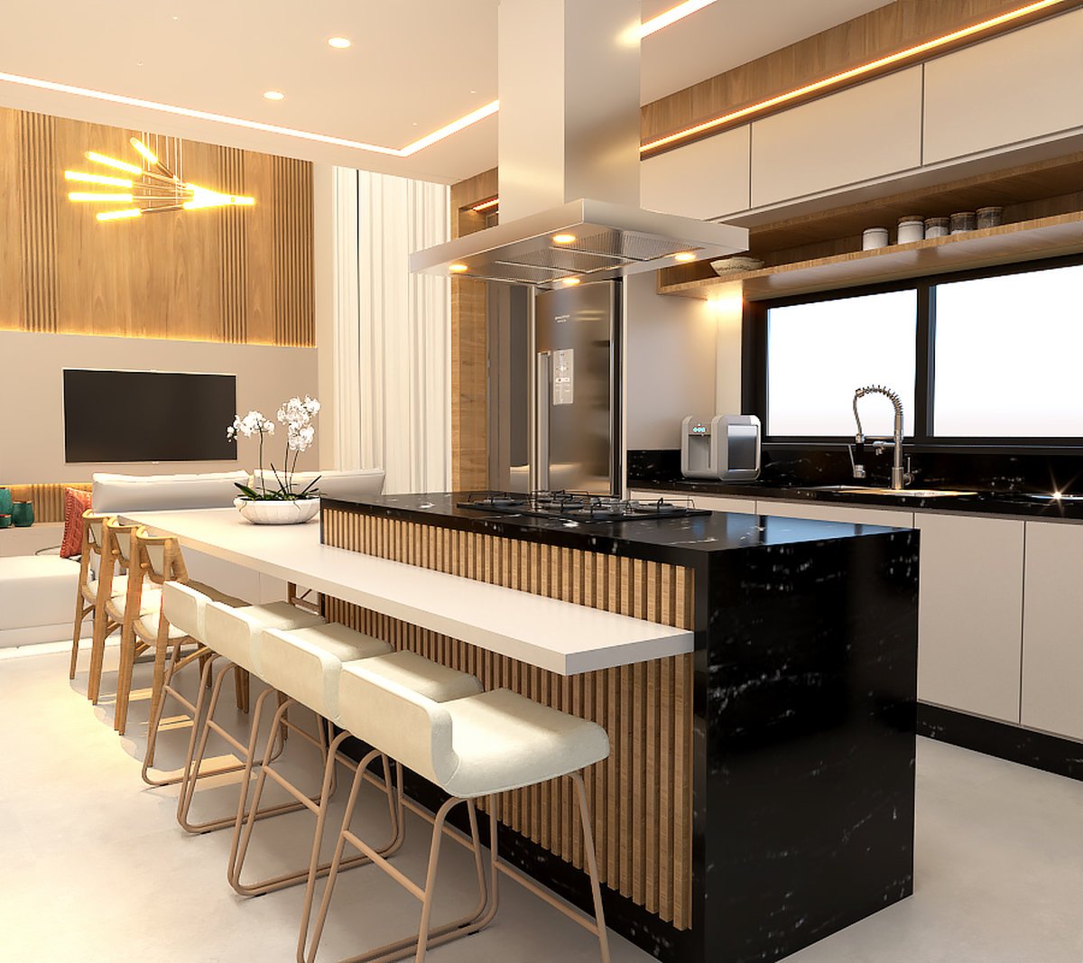 O design prioriza linhas limpas, funcionalidade e integração entre os ambientes.