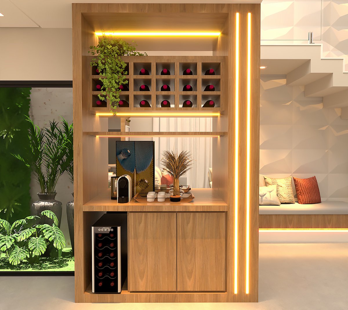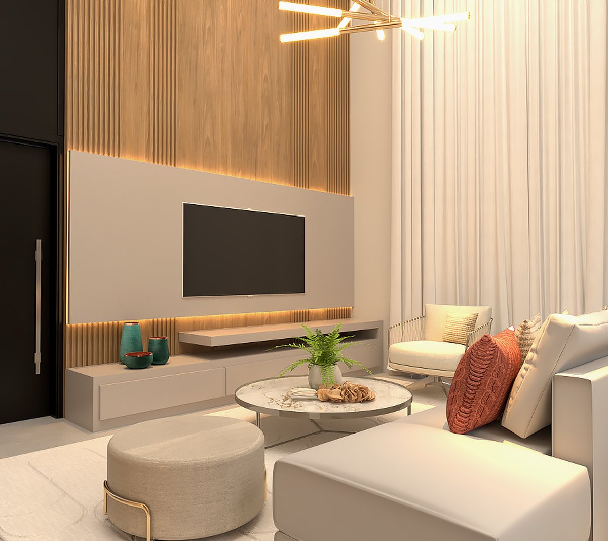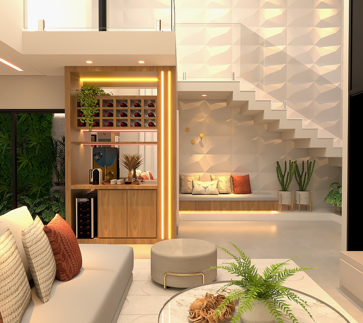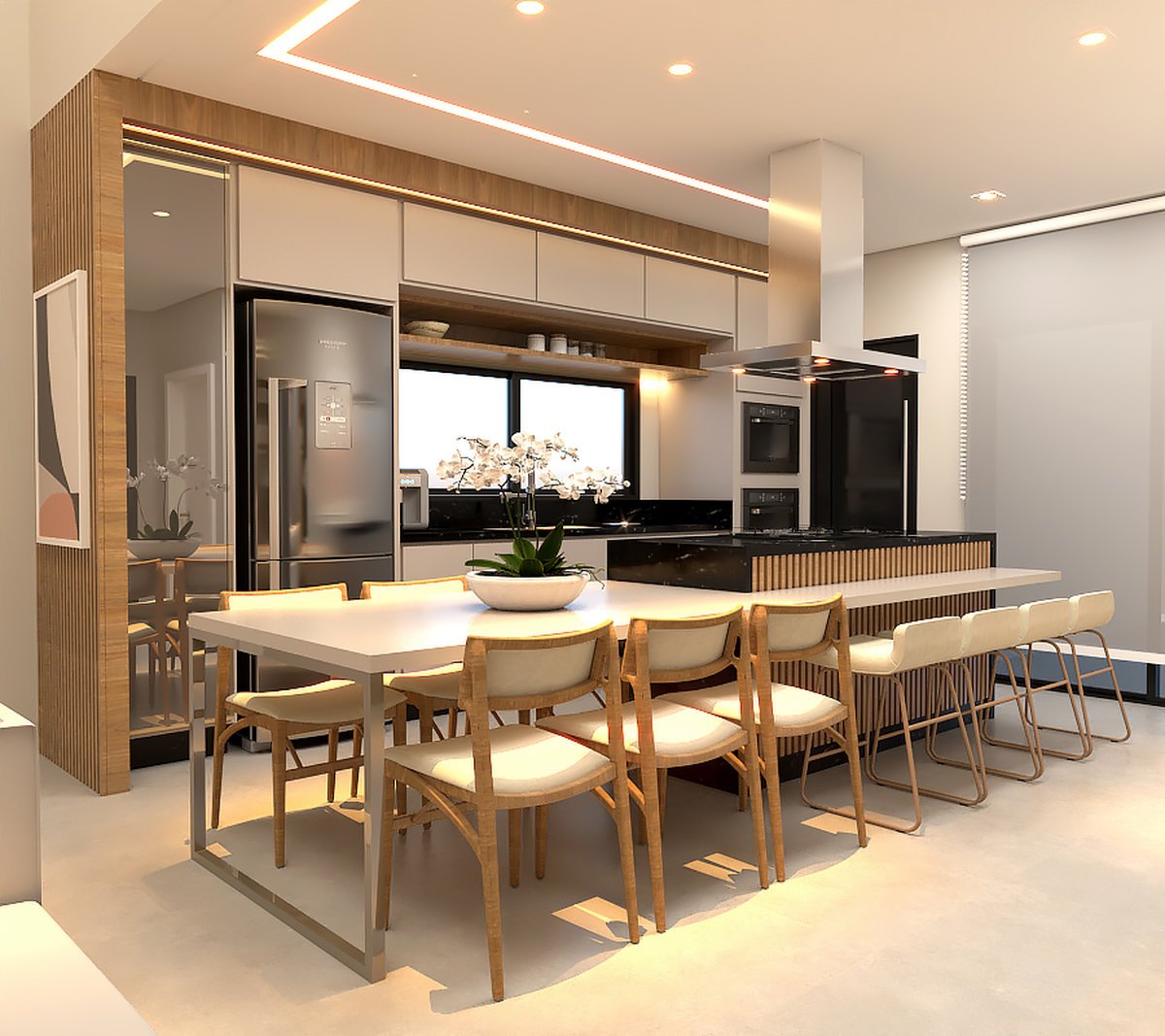 O design prioriza linhas limpas, funcionalidade e integração entre os ambientes.